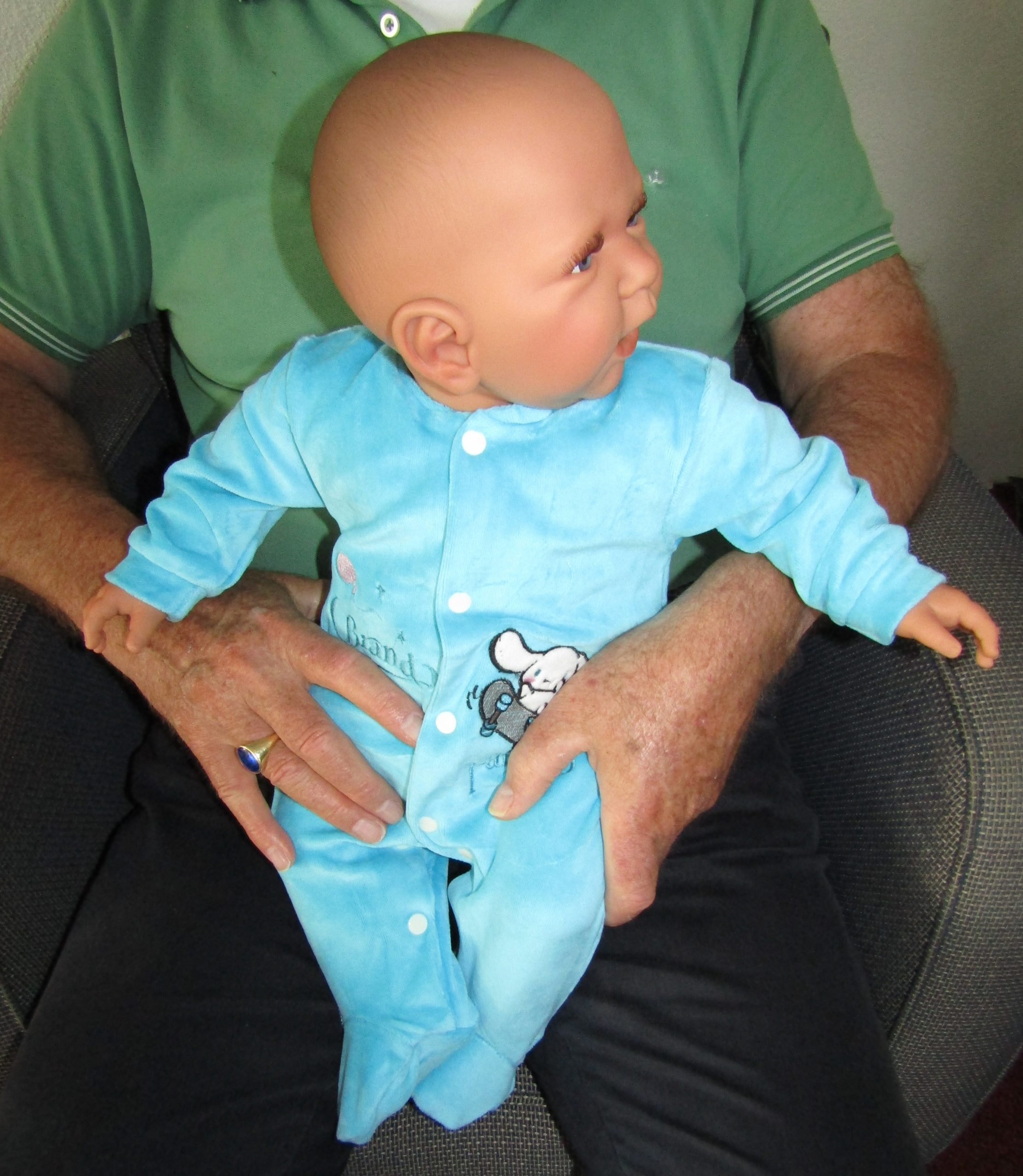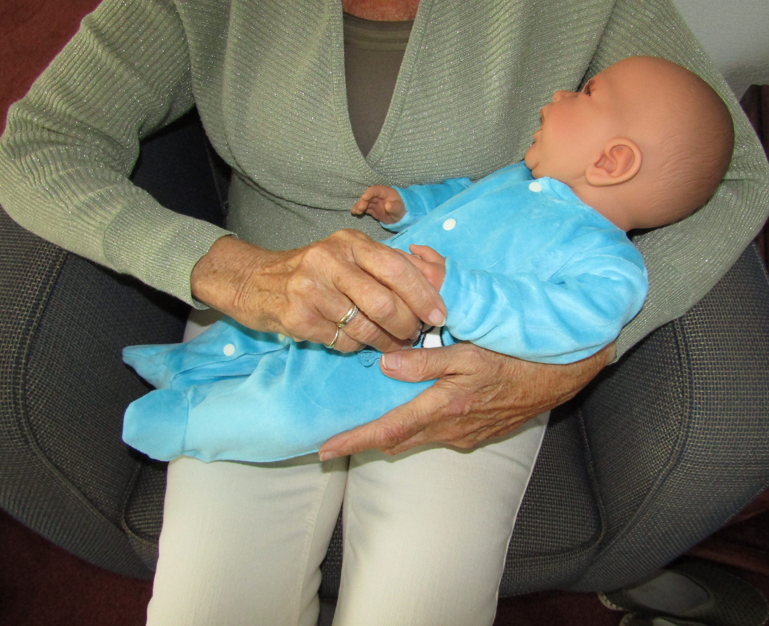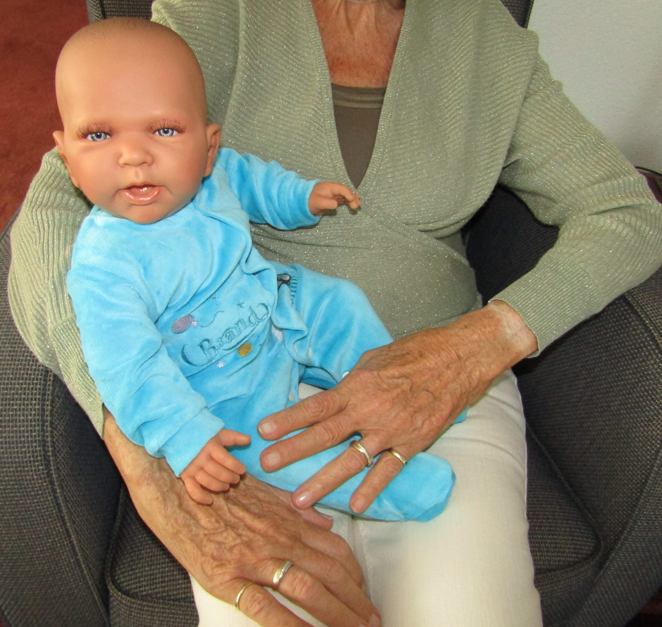Levensechte baby pop in grote maat van het exclusieve merk Doro Dolls by Berenguer maat 53 cm. Het lijfje is van stof, de armen benen en hoofdje zijn gemaakt van vinyl. Hij heeft een mooi getailleerd gezichtje met neutrale uitdrukking en blauwe ogen met wimpertjes. Maat 53 cm. Deze baby pop past gewone babykleding klein maatje 50/56. Hij wordt geleverd met luier en velours pakje. Deze pop is ook zeer geschikt voor ouderen met dementie en als show pop voor babykleding of bijvoorbeeld als oefenpop voor cursus babymassage. Gemaakt in Europa van veilige grondstoffen. Is niet geschikt voor kleine kinderen onder de 3 jaar vanwege de wimpertjes. Verpakking : Deze poppen worden door de fabrikant aan ons geleverd in plastic , wij doen daar zelf een recycle doos omheen voor de verzending naar onze klanten.