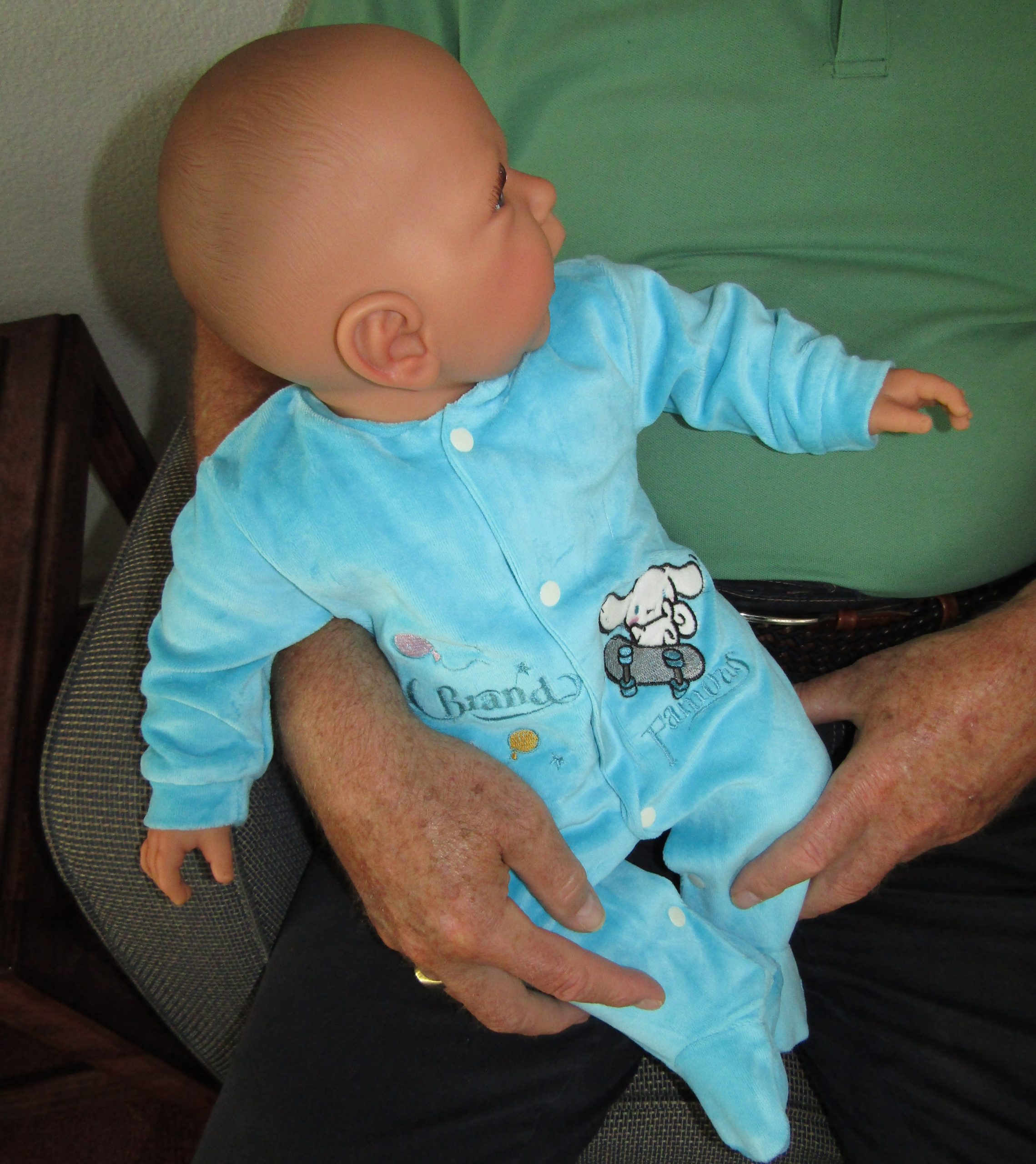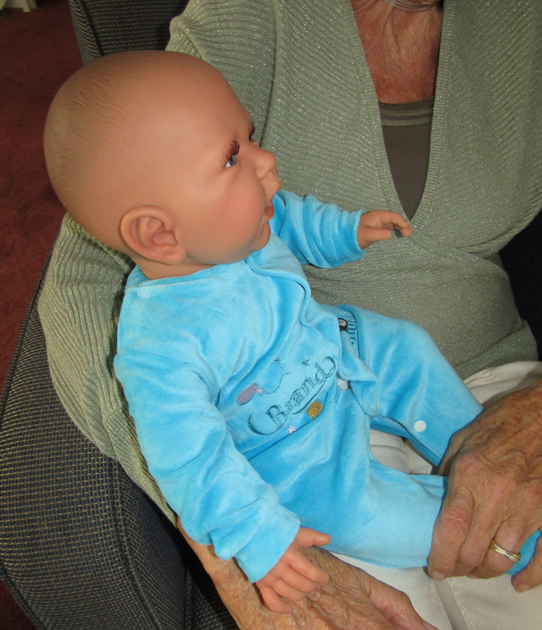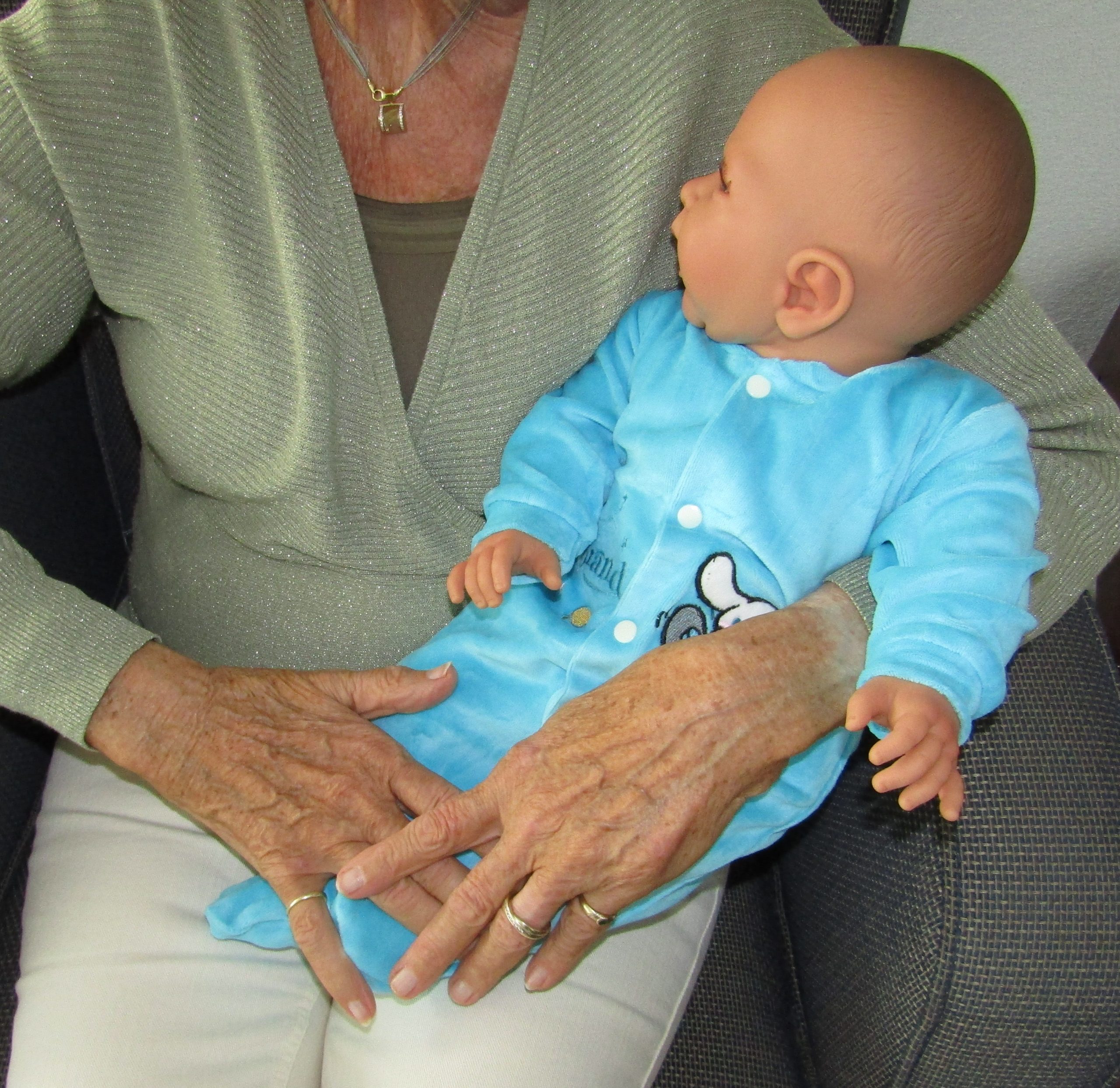 Levensechte baby pop in grote maat van het exclusieve merk Doro Dolls by Berenguer maat 53 cm. Het lijfje is van stof, de armen benen en hoofdje zijn gemaakt van vinyl. Hij heeft een mooi getailleerd gezichtje met neutrale uitdrukking en blauwe ogen met wimpertjes. Maat 53 cm. Deze baby pop past gewone babykleding klein maatje 50/56. Hij wordt geleverd met luier en velours pakje. Deze pop is ook zeer geschikt voor ouderen met dementie en als show pop voor babykleding of bijvoorbeeld als oefenpop voor cursus babymassage. Gemaakt in Europa van veilige grondstoffen. Is niet geschikt voor kleine kinderen onder de 3 jaar vanwege de wimpertjes. Verpakking : Deze poppen worden door de fabrikant aan ons geleverd in plastic , wij doen daar zelf een recycle doos omheen voor de verzending naar onze klanten.